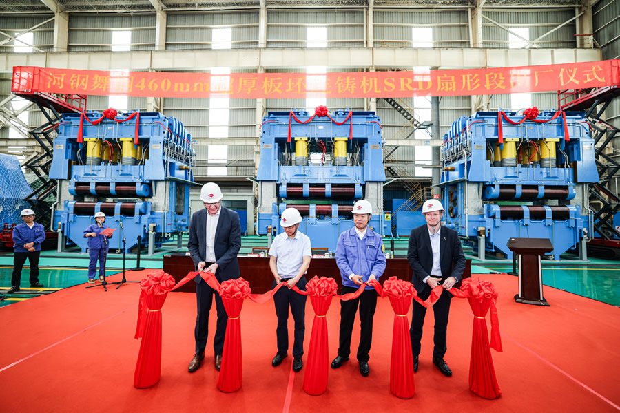 4月29日上午,在寶菱重工連鑄裝配中心,隆重舉行了“河鋼舞鋼460mm超厚板坯連鑄機(jī)SRD扇形段出廠儀式”。河鋼集團(tuán)舞鋼公司、寶菱重工、普銳特中國、普銳特奧地利等四方的主要領(lǐng)導(dǎo)和員工代表出席儀式,共同見證?了全球領(lǐng)先的460mm超厚板坯連鑄機(jī)SRD扇形段?正式出廠的榮耀時刻。此次出廠儀式,不僅標(biāo)志著460mm超厚板坯連鑄機(jī)SRD扇形段的圓滿交付,更彰顯了河鋼集團(tuán)舞鋼公司、普銳特、寶菱重工在超厚板坯